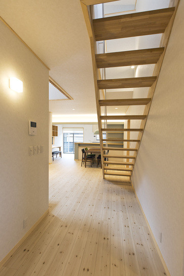 吹き抜けも設けてできるだけ家の中を明るくなるように設計しました。